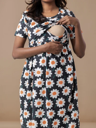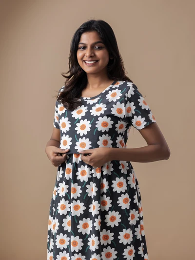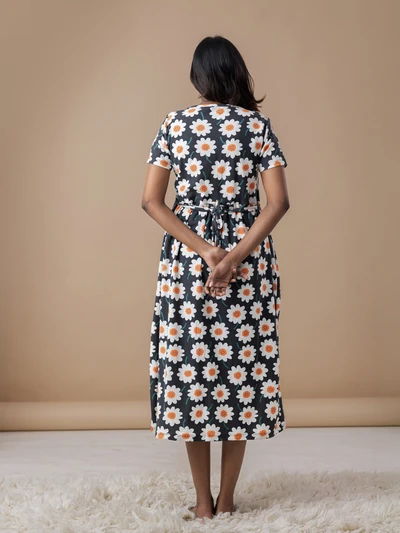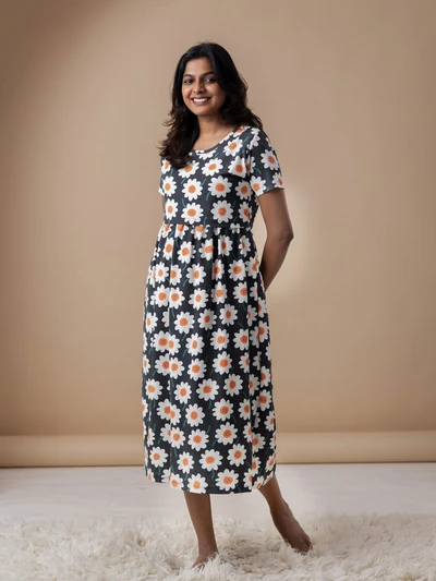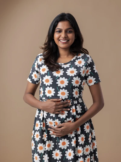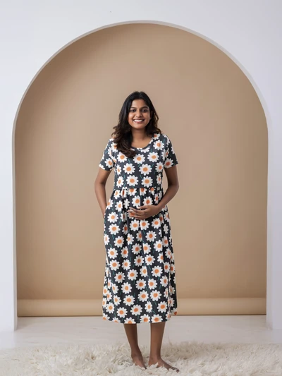 Cream Leafy Leaf - Cotton Maternity Lounge Dress