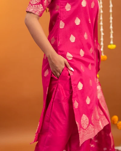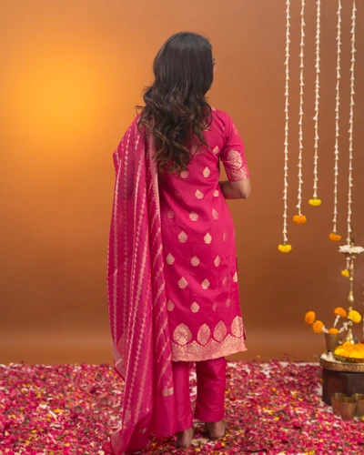 Green Mangalgiri Handloom Cotton Kurta Set with Dupatta