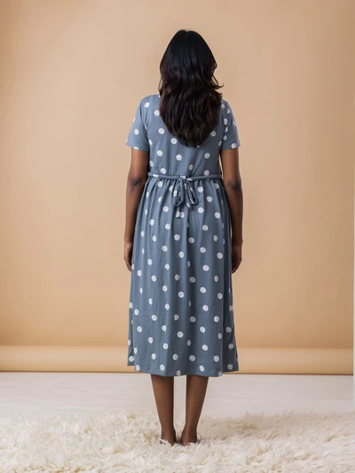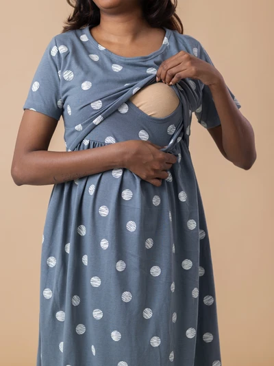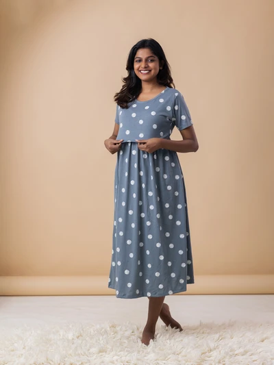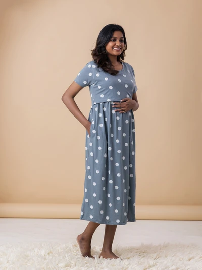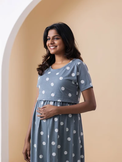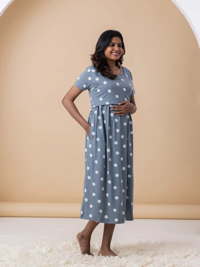 Cream Leafy Leaf - Cotton Maternity Lounge Dress