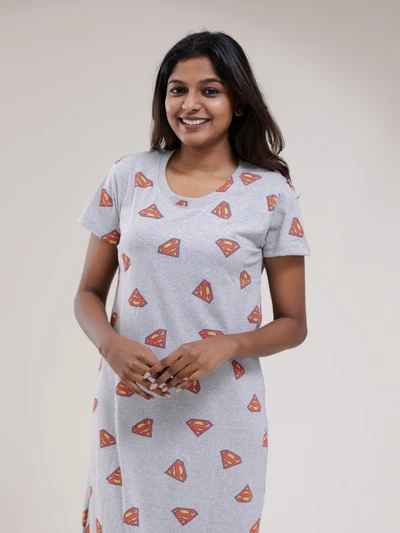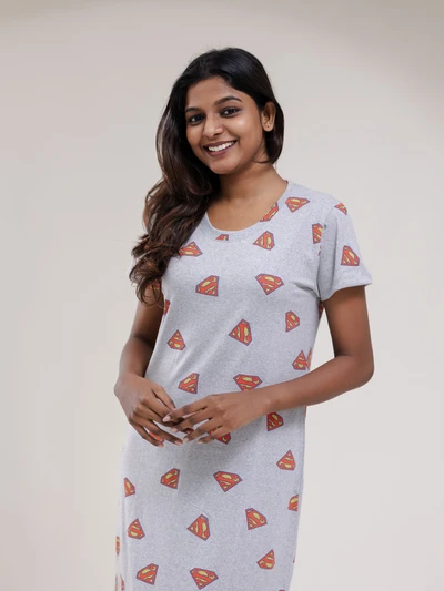Grey Superman Soft Cotton Evening Dress
