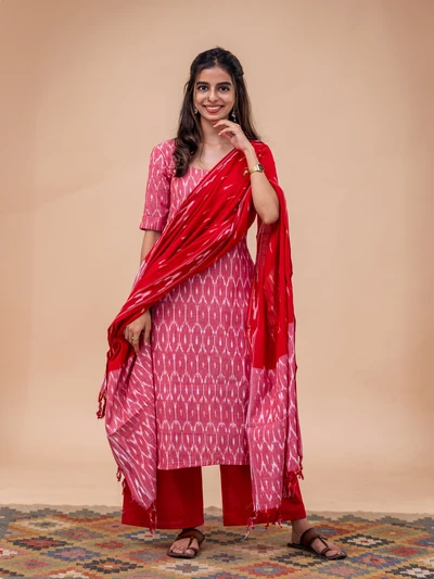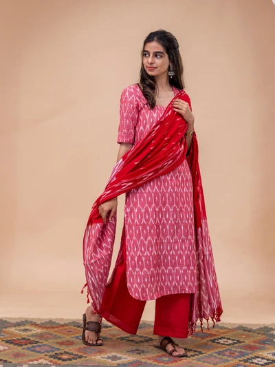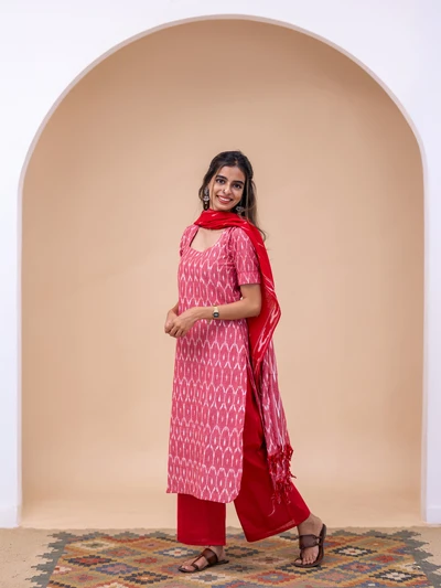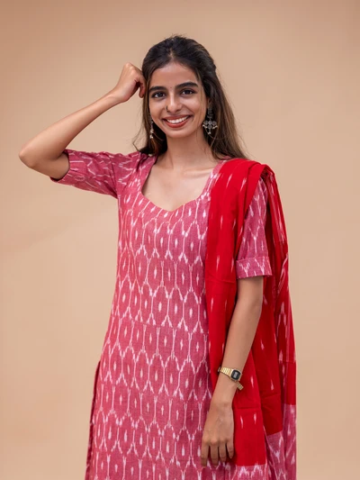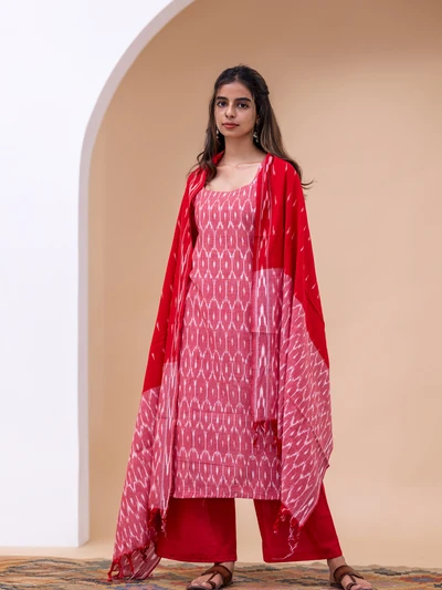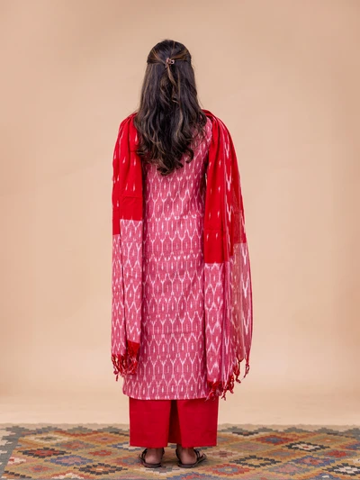 Gulabi Ikkat Kurta With Dupatta Set