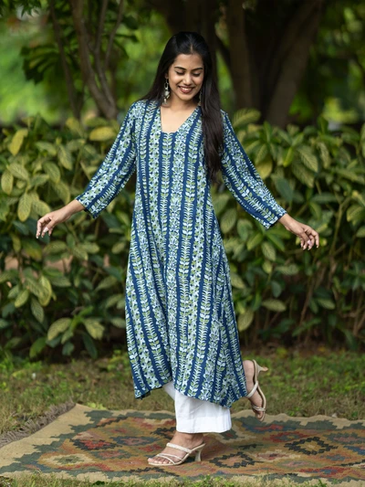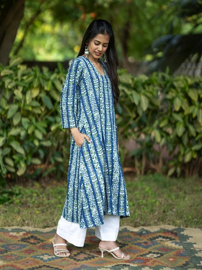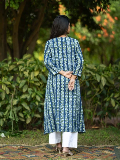 Handblock Indigo Floral Cotton Kurta