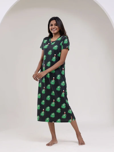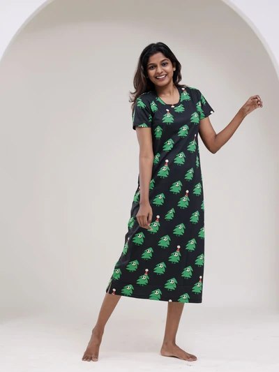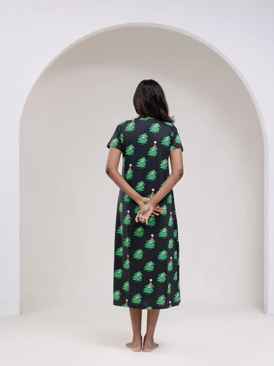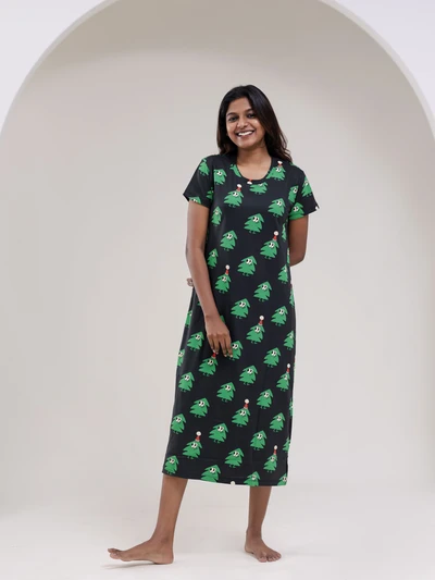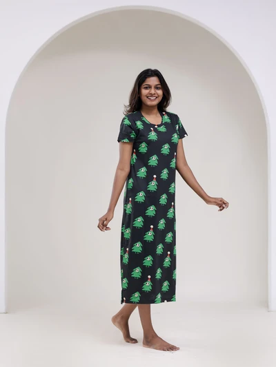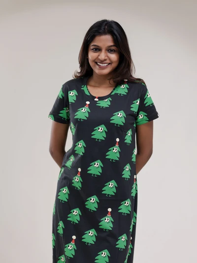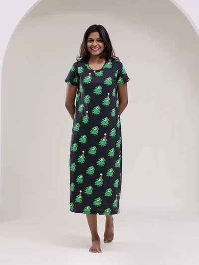 Cream Leafy Leaf - Cotton Maternity Lounge Dress
