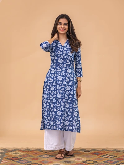 Moonlit Indigo Floral Kurta