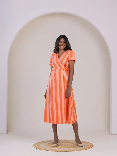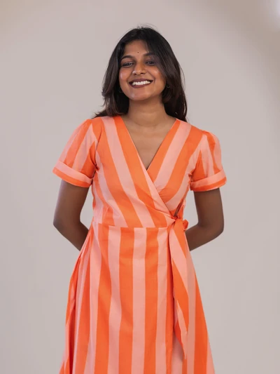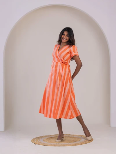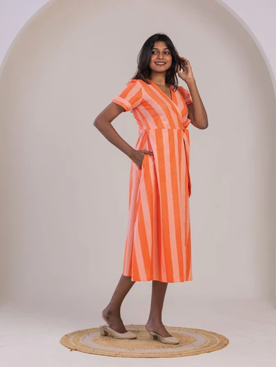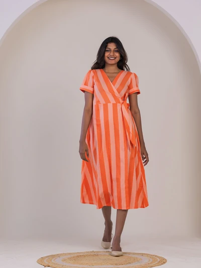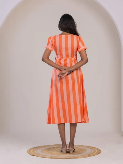 Orange Striped Printed Dress
