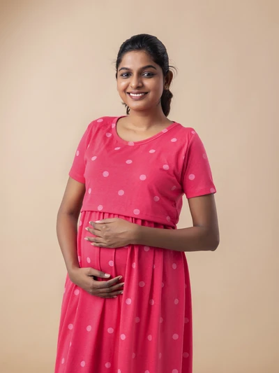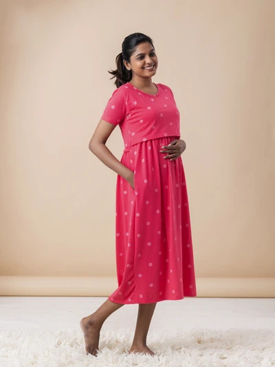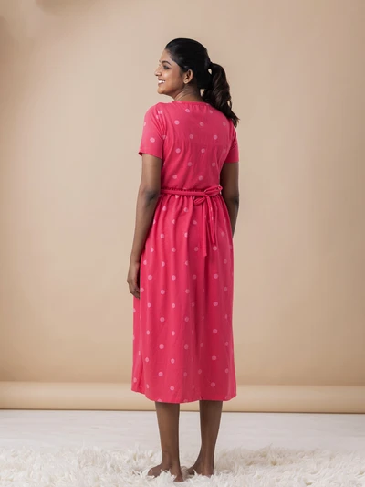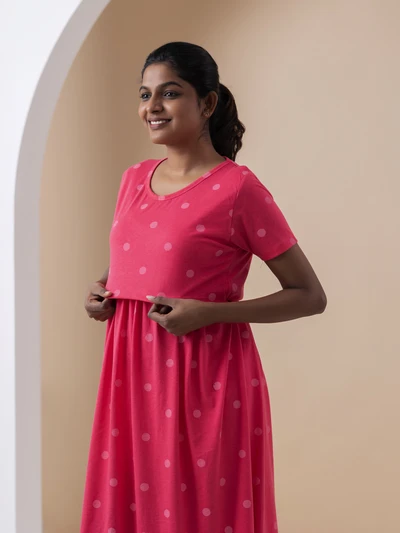Pink Polka - Cotton Maternity Lounge Dress