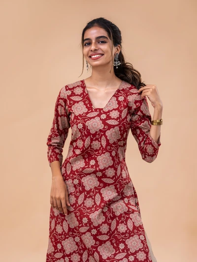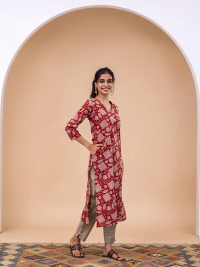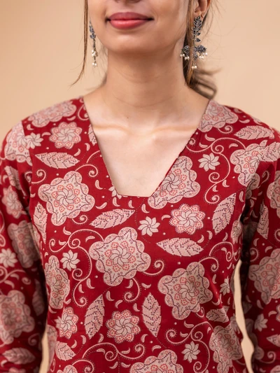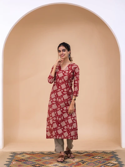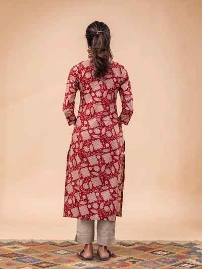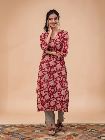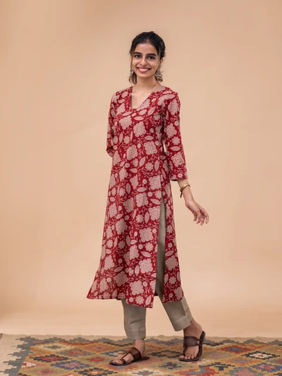 Rustic Abstract Maroon Bloom Kurta