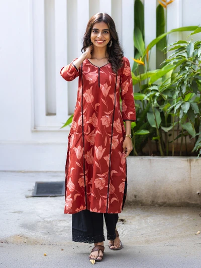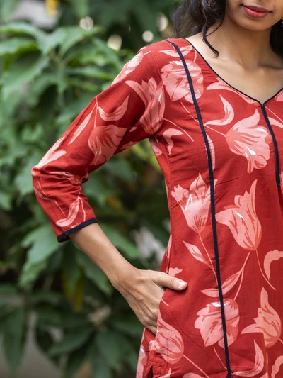 Red Petal Printed Kurta
