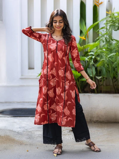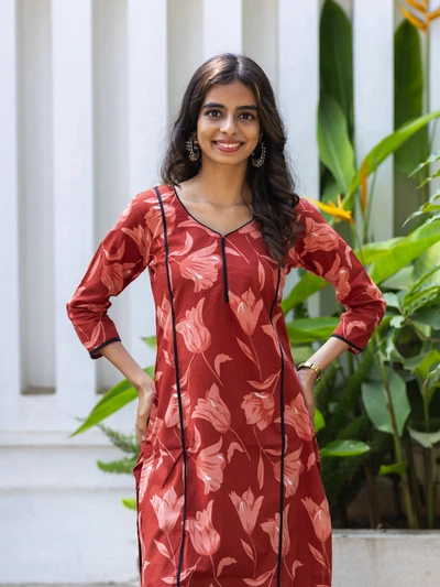 Rustic Abstract Maroon Bloom Kurta