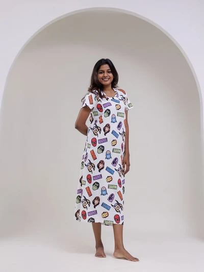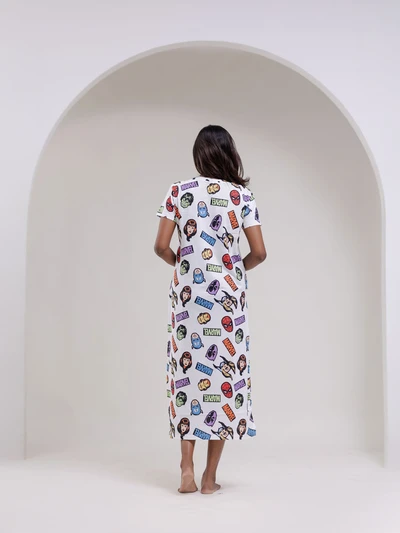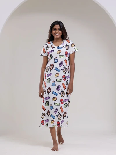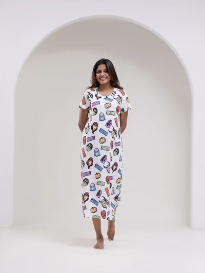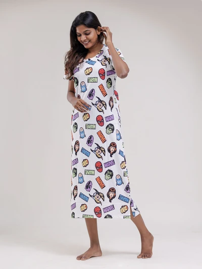 Cream Leafy Leaf - Cotton Maternity Lounge Dress