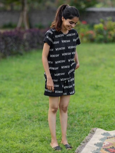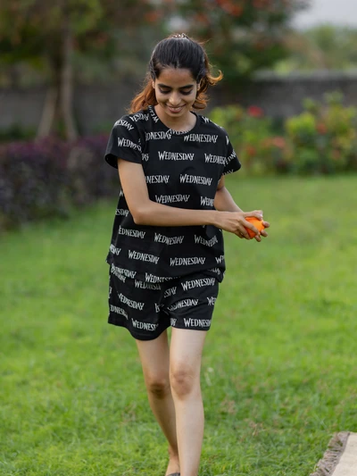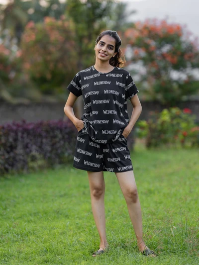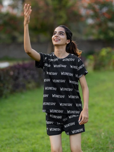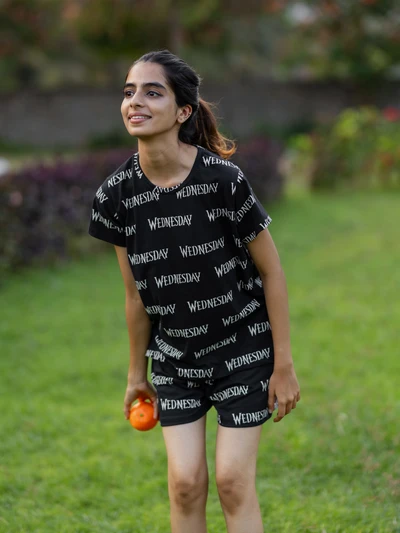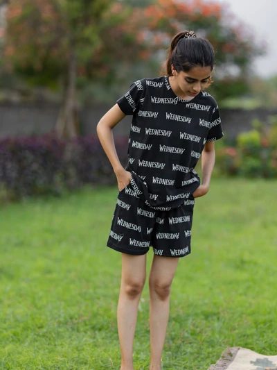 Wednesday Black Soft Cotton Shorts Set