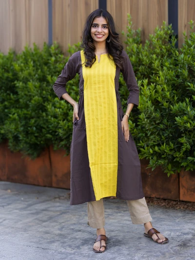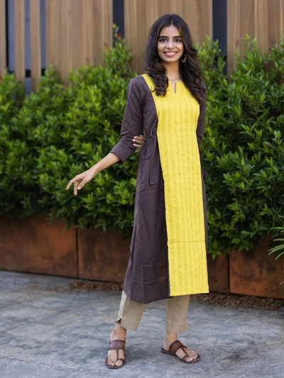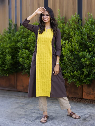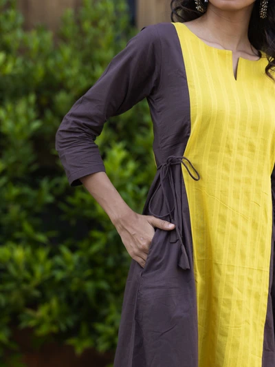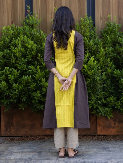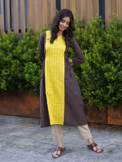 Yellow Colour Block Kurta