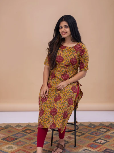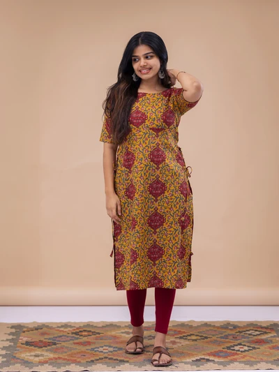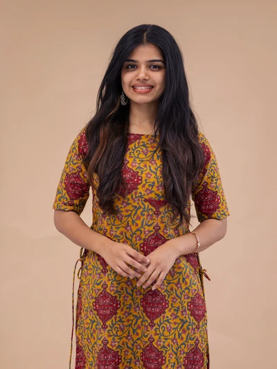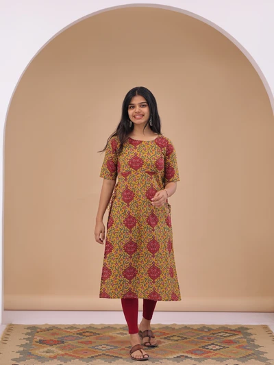 Yellow Green Ajrak Kurta